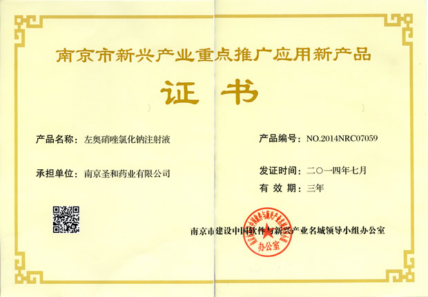 2014南京市新興產(chǎn)業(yè)重點推廣應(yīng)用新產(chǎn)品證書