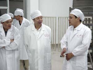 2003年8月18日上午,在江蘇省藥品監(jiān)督管理局局長毛季琳同志的陪同下,浙江省藥品監(jiān)督管理局鄭尚金局長率該局赴江蘇考察團一行20余人來我公司參觀考察。公司董事長兼總經(jīng)理王勇、副總經(jīng)理戚良猛、張倉等領(lǐng)導(dǎo)和藥廠負責(zé)人在新港生產(chǎn)基地進行了接待。
