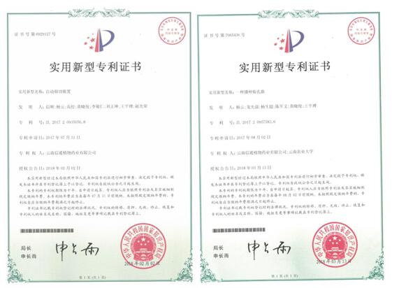 截止2018年3月,云南信通植物藥業(yè)有限公司共組織和參與申報(bào)通關(guān)藤相關(guān)技術(shù)專(zhuān)利17項(xiàng),其中實(shí)用新型專(zhuān)利10項(xiàng)全部獲批并取得專(zhuān)利證書(shū),7項(xiàng)發(fā)明專(zhuān)利全部受理,其中已有3項(xiàng)公示并進(jìn)入實(shí)質(zhì)審查階段。