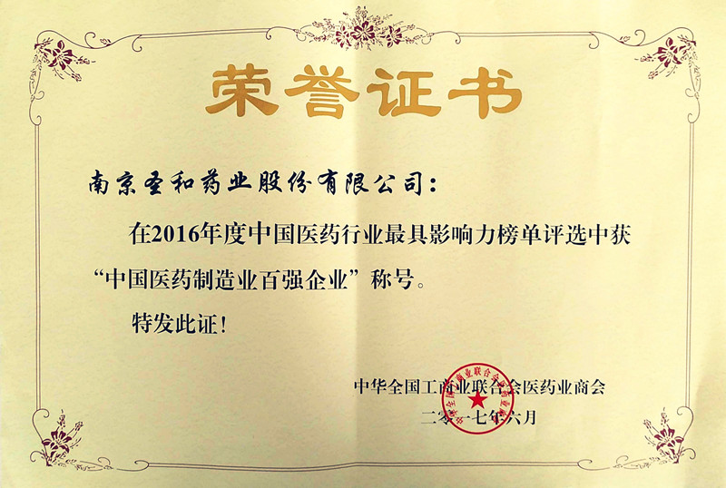 2016年度中國醫(yī)藥制造業(yè)百強企業(yè)