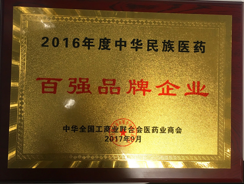 2016年度中華民族醫(yī)藥百強(qiáng)品牌企業(yè)