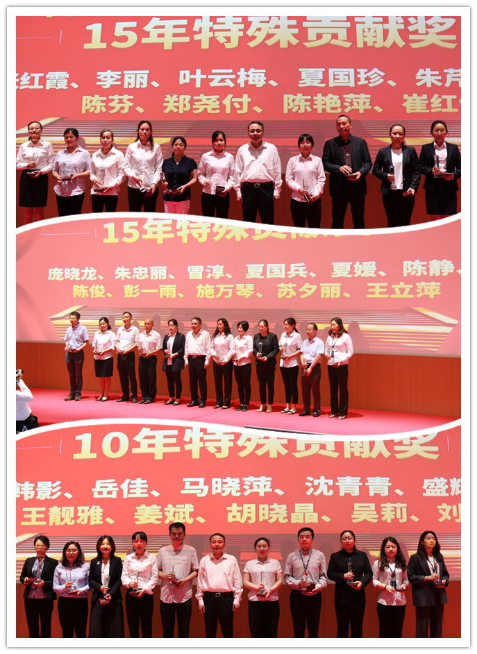 本次表彰分為優(yōu)秀團隊表彰、先進員工表彰和特殊貢獻表彰。西南代表處及華東代表處獲杰出團隊貢獻獎;先進員工表彰,分別設立“鐵血戰(zhàn)士”、“百戰(zhàn)精英”、“榮耀軍魂”、“璀璨之星”四個獎項,肖靜、張巍巍等共187人分獲獎項,其中鐵血戰(zhàn)士130人;百戰(zhàn)精英34人;榮耀軍魂5人;璀璨之星18人。特殊貢獻獎表彰,根據(jù)司齡,分為10年、15年、20年特殊貢獻獎三個部分,本次授予賈勇、張翠華等147人特殊貢獻榮譽稱號。