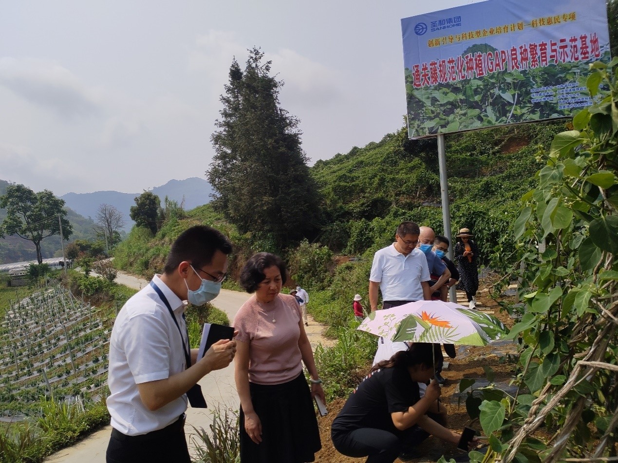 樊美蓮副主席對(duì)基地近幾年的科研創(chuàng)新成果給予了高度評(píng)價(jià),也希望圣和藥業(yè)能在高標(biāo)準(zhǔn)建好種植基地、保障藥材供應(yīng)的同時(shí),充分發(fā)揮企業(yè)自身技術(shù)和產(chǎn)業(yè)鏈完備優(yōu)勢(shì),利用云南生物醫(yī)藥與大健康的有利政策和藥材王國(guó)的自然優(yōu)勢(shì),在蒙自建設(shè)深加工產(chǎn)業(yè)鏈,做大做強(qiáng)生物醫(yī)藥產(chǎn)業(yè)。