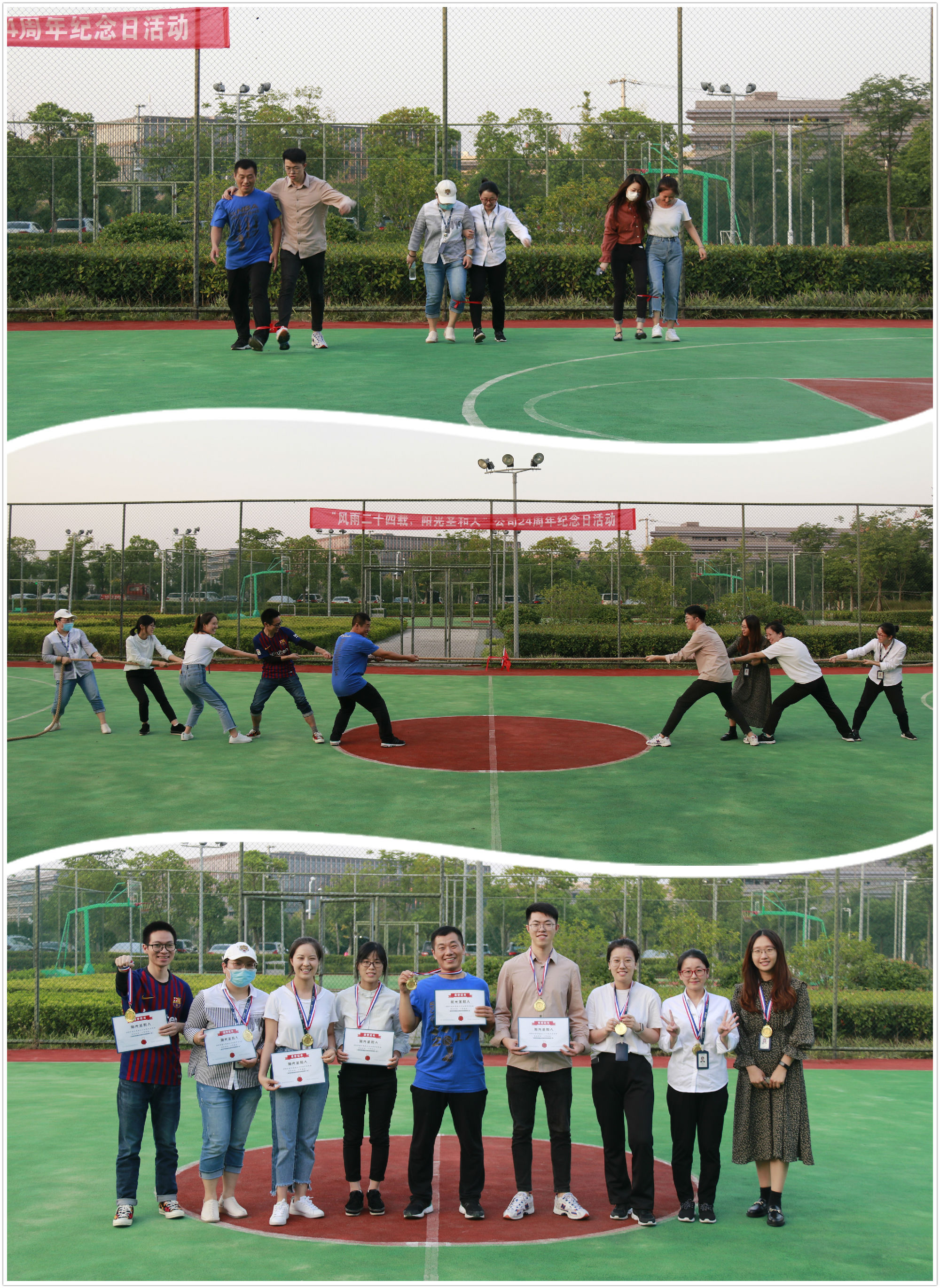 吃完蛋糕,以爭奪“體能券”為目標(biāo)的趣味五項(xiàng)比賽開始了?;@球場上,100米接力跑、指壓板跳繩、多人多足、傳球運(yùn)動(dòng)、拔河等“競技”項(xiàng)目輪番上陣,大家鉚足了勁,為展示體能與技巧一決高下,現(xiàn)場歡聲笑語不斷。