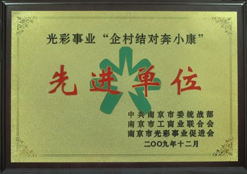 2009年12月18日下午,南京市委統(tǒng)戰(zhàn)部、市工商聯(lián)和市光彩事業(yè)促進會共同舉辦了“南京市光彩事業(yè)‘企村結對奔小康’活動先進單位”表彰大會,市領導錢繼紅等出席了會議。會議總結了三年來,我市光彩事業(yè)“企村結對奔小康”取得的成績,部署了下一階段工作,對三年來一直大力弘揚光彩事業(yè)精神,積極承擔社會責任并做出突出貢獻的非公有制經(jīng)濟組織進行表彰。會上,我公司被授予“南京市光彩事業(yè)‘企村結對奔小康’活動先進單位”稱號。