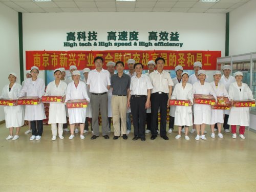 7月15日,夏日炎炎,南京市新興產(chǎn)業(yè)工會(huì)王軍主任、朱耀華處長(zhǎng)一行五人在戚良猛副總經(jīng)理的陪同下,冒著酷暑來(lái)到我司新港生產(chǎn)基地,慰問(wèn)奮戰(zhàn)在生產(chǎn)一線(xiàn)的廣大職工,為一線(xiàn)職工送上了防暑降溫慰問(wèn)品,給職工們帶來(lái)了清涼和關(guān)懷。