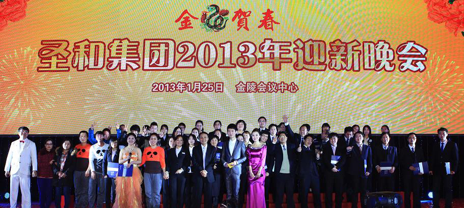 金龍笑歸隱,銀蛇喜相迎。1月25日晚,圣和集團(tuán)2013年迎新晚會在金陵國際會議中心中華廳隆重舉行,在寧員工及家屬、駐外員工代表1000余人歡聚一堂。晚會現(xiàn)場喜氣融融,大屏幕上不時(shí)滾動(dòng)播放公司宣傳片、大事記、獲獎(jiǎng)員工照片和攝影展獲獎(jiǎng)作品。