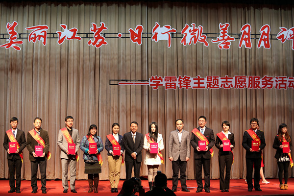 本網(wǎng)訊 3月4日,在毛主席“向雷鋒同志學(xué)習(xí)”題詞50周年紀(jì)念日和中國青年志愿者服務(wù)日到來之際,團(tuán)省委、省志愿者協(xié)會(huì)在南京航空航天大學(xué)將軍路校區(qū)藝術(shù)中心劇場舉行了“夢美麗江蘇·日行微善月月評(píng)”學(xué)雷鋒主題志愿服務(wù)活動(dòng)暨江蘇省十佳青年志愿者、十佳青年志愿服務(wù)項(xiàng)目頒獎(jiǎng)典禮,王勇董事長出席了此次活動(dòng)。