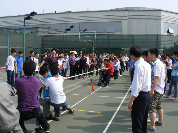 4月28日下午,位于制藥廠內(nèi)的籃球場上人聲鼎沸、熱鬧非凡,參加拔河比賽參賽隊(duì)員、啦啦隊(duì)員及工作人員早早來到了場地。15點(diǎn)整,隨著裁判的哨聲一響,參賽隊(duì)員都全身心地投入到比賽中去。隊(duì)員們緊緊抓牢手中的繩子,降低重心,齊心協(xié)力,卯足了勁往后拉。每名隊(duì)員都是竭盡全力,摔倒了,再爬起來,手磨破了,咬咬牙繼續(xù)堅(jiān)持著?!凹佑?!加油!”場邊拉拉隊(duì)員們的加油聲、歡呼聲響徹整個籃球場的上空,此起彼伏,現(xiàn)場氣氛十分熱烈。