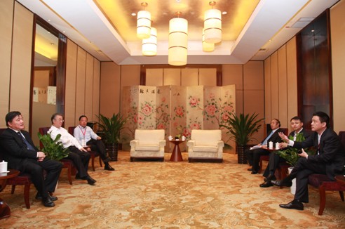 桑國(guó)衛(wèi)副委員長(zhǎng)、陳竺部長(zhǎng)與王勇董事長(zhǎng)(右二)等參會(huì)代表親切交談