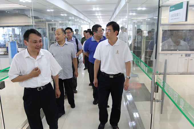 本網(wǎng)訊 8月2日,國家食品藥品監(jiān)督管理總局藥品化妝品注冊管理司王立豐司長、藥品審評中心馮毅主任助理,中國醫(yī)藥工業(yè)科研開發(fā)促進(jìn)會宋瑞霖會長、陳昌雄常務(wù)副秘書長、國際部黃毅副主任等一行9人在省食品藥品監(jiān)督管理局胡曉抒局長陪同下,來我司考察。
