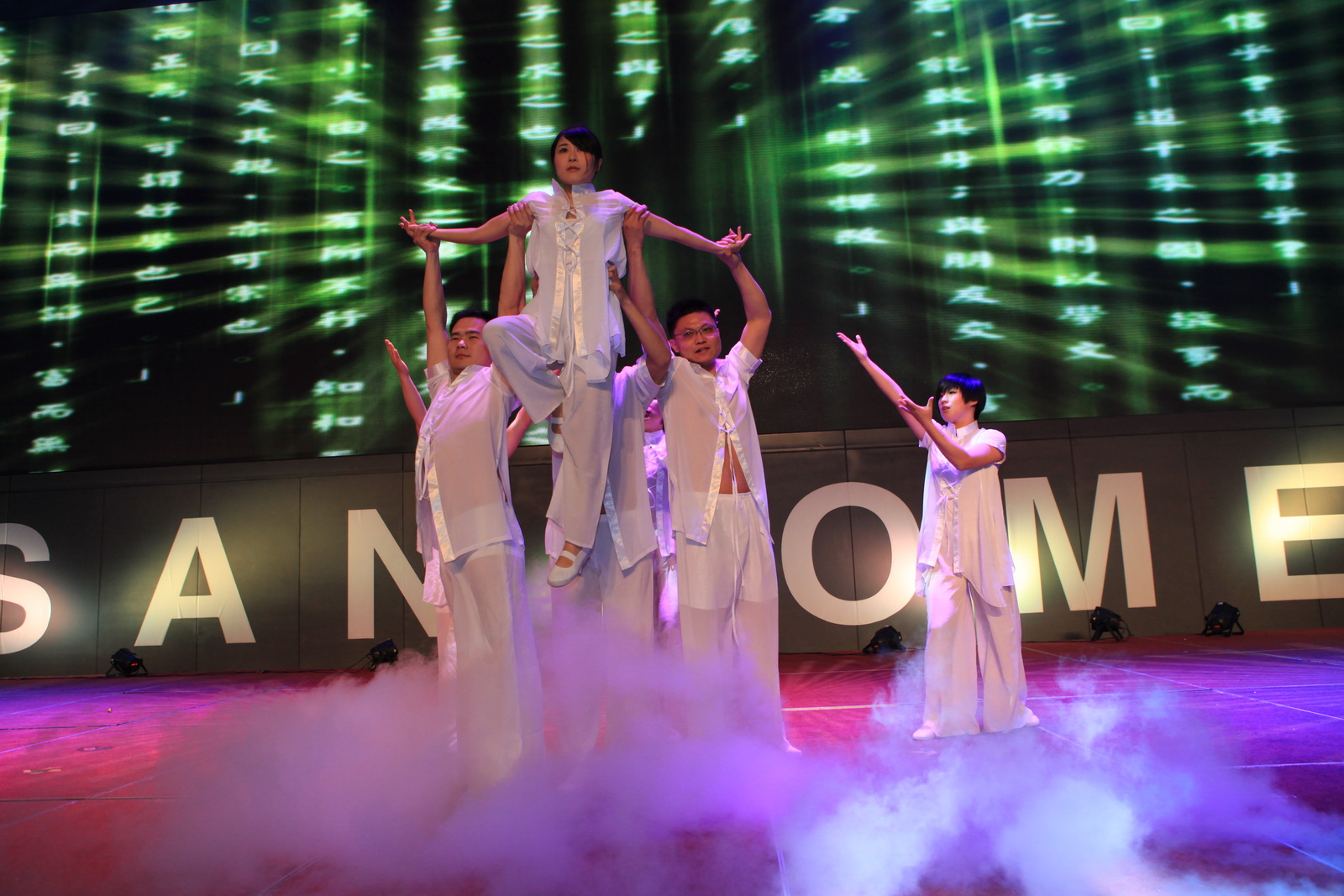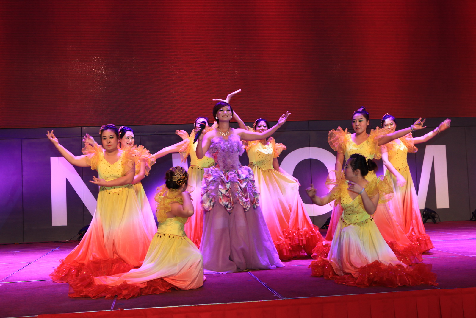 舞蹈《好運來》拉開了演出的序幕,視頻短片《光耀未來》寓意著,“榮光耀,千里之行始今朝,展未來,萬里揚帆再啟航”。由吉遼大區(qū)孫瑤等帶來的歌伴舞《相信》和來自南京德云社的兩位著名相聲演員,給大家?guī)砹瞬灰粯拥穆犛X享受。江蘇大區(qū)的童沅等帶來的舞蹈串燒,展示了圣和員工的活力和朝氣。研發(fā)中心的視頻互動《爸爸去哪兒了》,喚起了大家無限的親情感受。江蘇省歌舞團演員奉上的民歌《越來越好》和《在希望的田野上》,增添了紅紅火火的氣氛。黑龍江大區(qū)的張巍巍、郭強兩人合作的小品《吃面》,給大家?guī)砹瞬簧贅纷?。制劑分廠三車間任詠秋的歌伴舞《望鄉(xiāng)》,唱出了無盡的鄉(xiāng)情。奇妙的《水晶芭蕾》,給大家?guī)砹瞬灰粯拥挠^賞視覺。云貴大區(qū)的小品《新白蛇傳》中插播的廣告詞,讓圣和人記憶猶新。研發(fā)中心何承華帶來了歌曲《女人花》,盡顯柔情感染了全場。供應鏈徐明秀、滿金萍帶來快板表演《供應鏈之聲》,道出了供應鏈的心聲。京劇樣板戲串燒、制劑分廠一車間崔紅俊的獨唱《紛飛》,讓大家一飽耳福。上海大區(qū)譚秋艷等的現(xiàn)代舞《思韻》,毫不遜色專業(yè)型的舞蹈演員,輕盈的舞姿散發(fā)著時代的氣息。置業(yè)公司的小合唱《真心英雄》,掀起了本場晚會的高潮,王勇董事長也被邀登臺同唱。北京大區(qū)的舞蹈《好日子》落下了整場晚會的帷幕,寓意著新的一年我們迎來2014,讓我們盛情邀約好日子的到來。