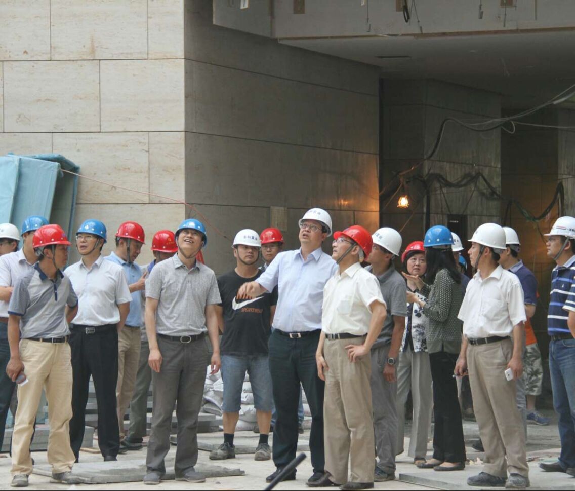 陳剛副市長一行穿過六朝博物館項目一層大廳,著重視察了博物館“采光頂”以及“展陳”施工現(xiàn)場,逐層查看了項目施工進展情況,詳細詢問了工程進展中存在的問題,并認真聽取了蘇世功總經(jīng)理關(guān)于工程質(zhì)量、安全、進度方面的情況匯報。陳剛副市長對博物館建設(shè)過程中各項質(zhì)量、安全、工期完成等方面表示非常滿意,他強調(diào):”南京六朝博物館“8月開館后將成為南京市城市的標志性建筑,也是2014年南京青奧會向國際友人呈現(xiàn)的世界歷史文化名城建設(shè),所以一定要抓緊工期,要保質(zhì)高效并且在不影響南京青奧會下達的各項禁令的情況下,如期開館。